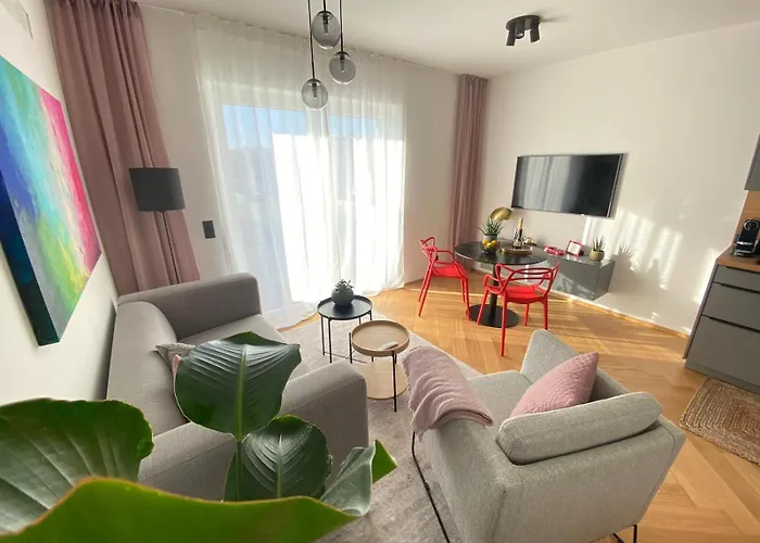 Stylische Wohnung Mit Balkon dairesinde mutfağın yanı sıra balkon, kanepe, kahve/çay makinesi içeren odalar bulunmaktadır. Bu konaklama tesisi Frida & Fred Çocuk Müzesi'e araçla 15 dakika, UPC Arenası'a ise 5 km uzaklıkta bulunmaktadır.